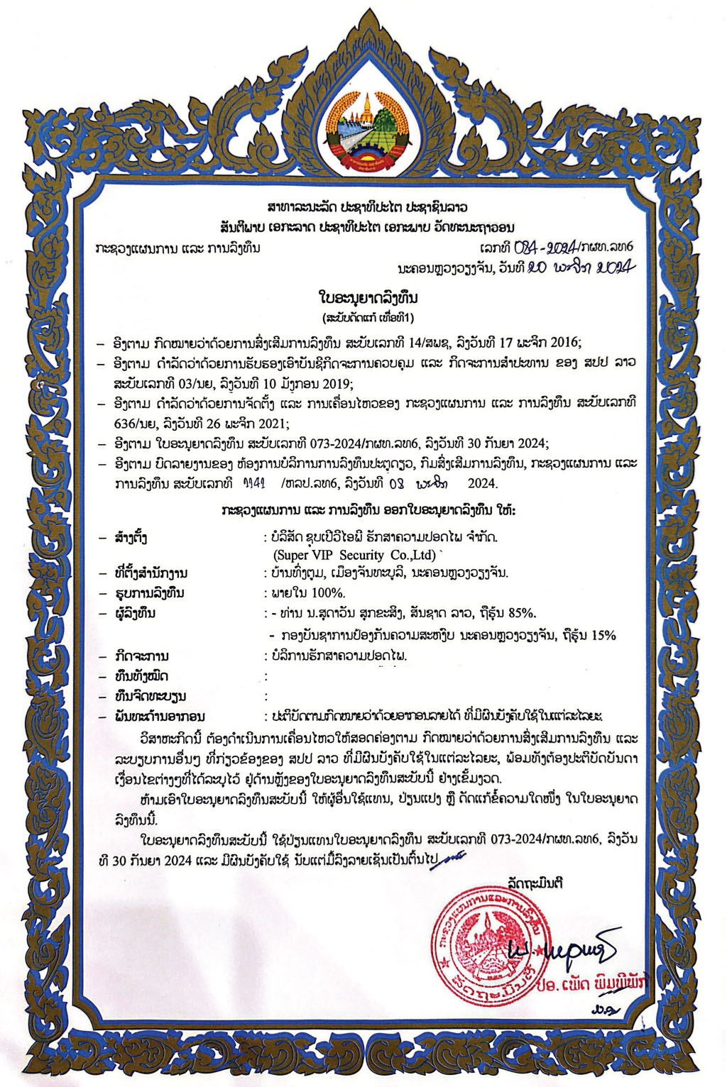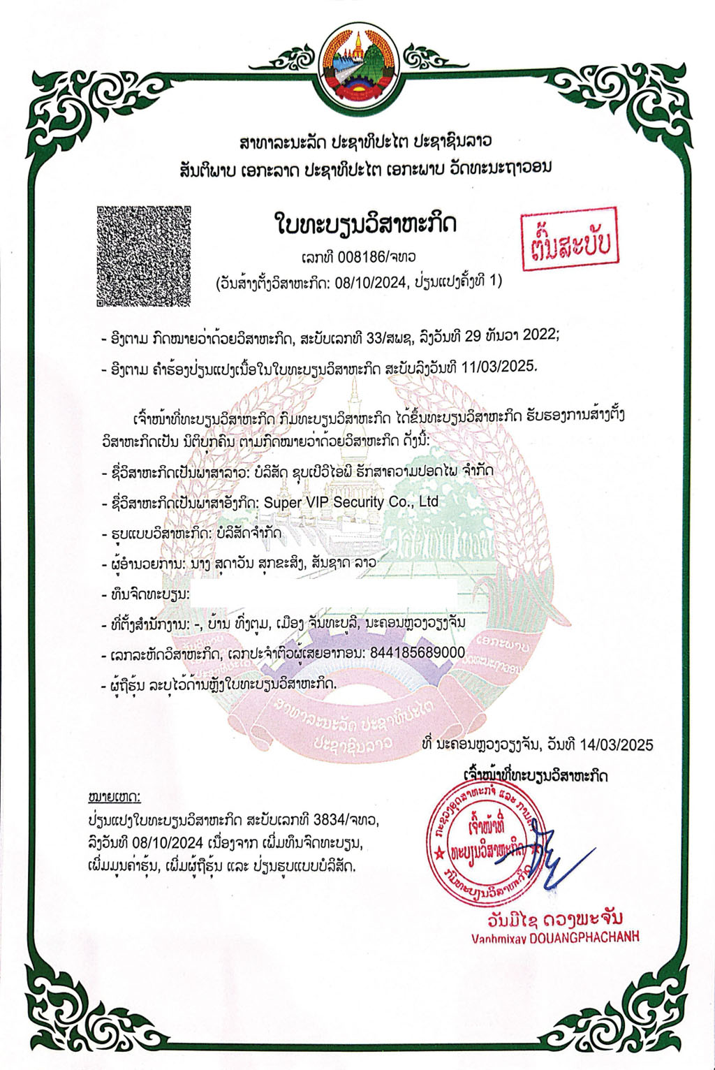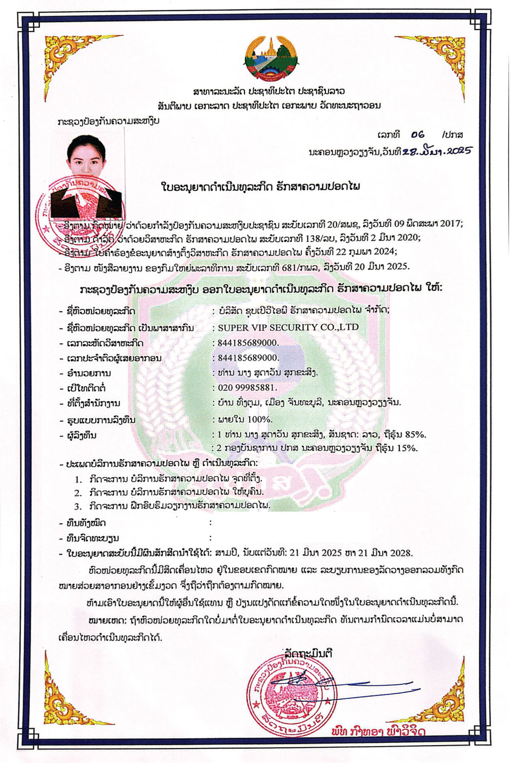 Managed by Mrs. Soudavanh Soukkasing(President of Super VIP Security), With the concept of being a security company that is committed to providing high quality and professional services to meet the diverse security needs of clients.